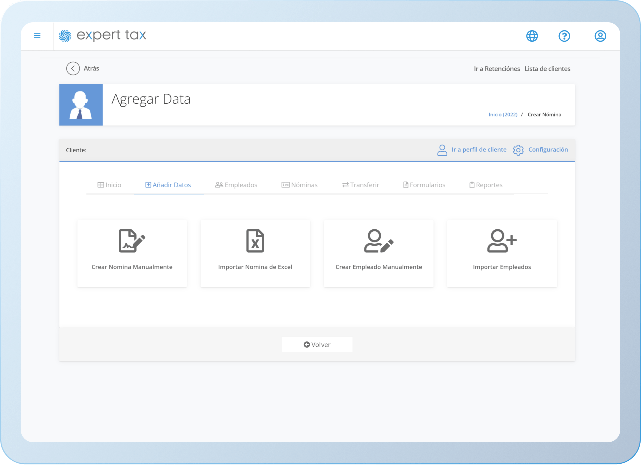 Importa o ingresa manualmente la información de las facturas por tipo (Pago de Servicios, Intereses, Dividendos, etc.) para completar automáticamente las Declaraciones Informativas Anuales.